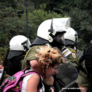 Γύρω στο 1:10 λεπτό του βίντεο, αρχίζει να ρητορεύει προς τα ΜΑΤ ένας μαζοχιστής διαδηλωτής.